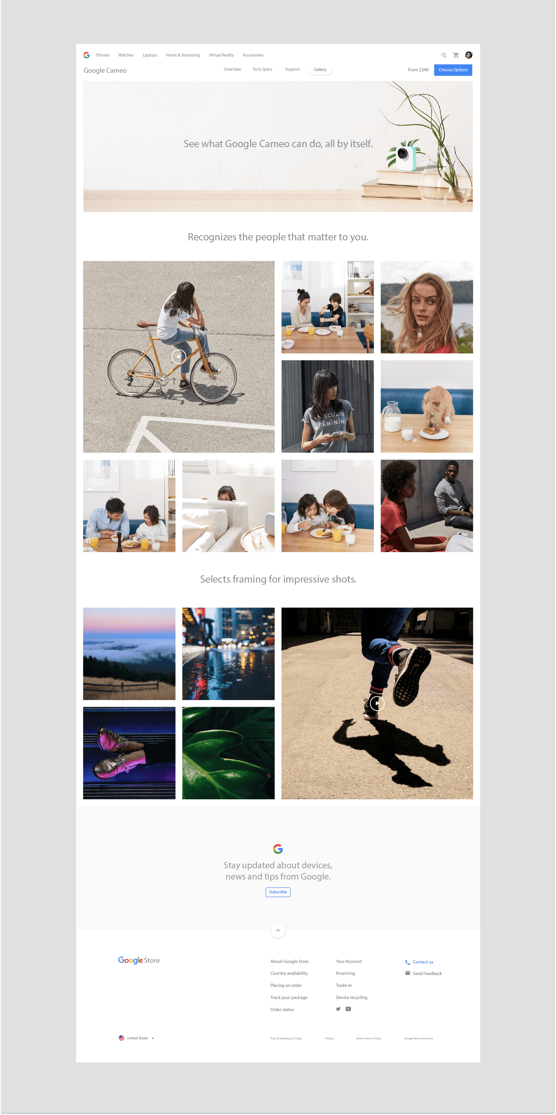 Challenge: Design a digital retail experience that transforms Google's complex hardware ecosystem into compelling stories - making technical products feel accessible and human while maintaining the sophistication of the Google brand.